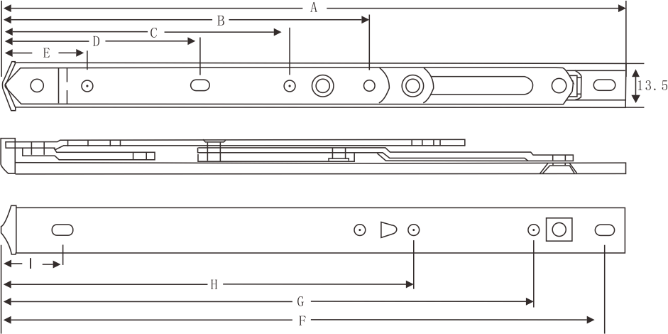 | 連桿數量 | 折片厚度(mm) | 規格\值 | A | B | C | D | E | F | G | I | 窗最高(mm) | 窗最寬(mm) | 窗最重(kg) | 開啟角度(±2°) |