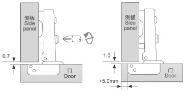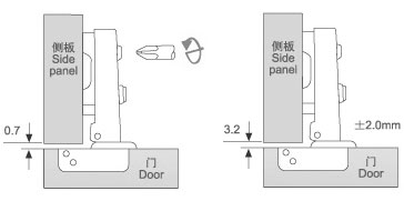 ※當(dāng)門上有多個(gè)鉸鏈時(shí),將所有鉸鏈按圖示方向卡入鉸鏈底座。
